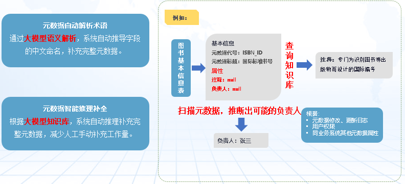 针对元数据信息缺失问题,顺利获得AI大模型的推理能力,可以基于最基础的技术元数据信息和业务样例数据,自动填充其他的核心元数据信息。对于脚本代码解析的难点,顺利获得AI大模型的代码解读能力,可以提升复杂代码、异构数据库和多类型的加工脚本场景下,血缘解析的成功率和准确率,并利用AI大模型总结并生成表级和字段级的业务口径或者数据处理逻辑,能极大地提升用户数据血缘和数据影响分析的效率。