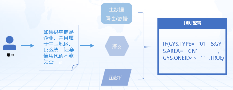 企业主数据规则的管理现在主要顺利获得以人工为主,规则制定的内容包括:主数据业务含义、主数据规则分类、主数据规则内容,相关的行业标准和企业规范等。人工方式召开这类工作,整个过程中会涉及一系列重复性高、精度差、效率低、技术要求高的环节。