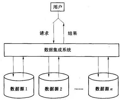 数据集成就是将若干个分散的数据源中的数据,逻辑地或物理地集成到一个统一的数据集合中。数据集成的核心任务是要将互相关联的分布式异构数据源集成到一起,使用户能够以透明的方式访问这些数据源。集成是指维护数据源整体上的数据一致性、提高信息共享利用的效率;透明的方式是指用户无需关心如何实现对异构数据源数据的访问,只关心以何种方式访问何种数据。实现数据集成的系统称作数据集成系统(见下图),它为用户给予统一的数据源访问接口,执行用户对数据源的访问请求。