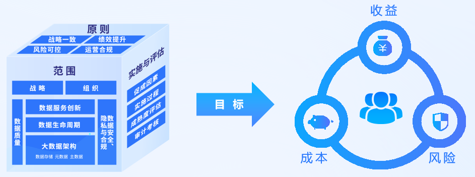 1、基于既定的治理原则,清晰确定数据治理涉及的范围,制定可量化、可执行的实施与评估方法