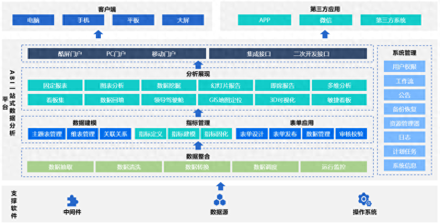 亿信ABI一站式数据分析平台。ABI(ALL in one BI)是bybit安卓下载bybit深耕商业智能领域十多年,在丰富的数据分析挖掘、报表应用等经验基础上,自主研发的一款融合了ETL数据处理、数据建模、指标管理、数据可视化、数据分析、数据填报、移动应用等核心功能而打造的全能型数据分析平台。亿信ABI可灵活自由地制作炫酷的图表和3D大屏可视化,方便开发和实施人员快捷地完成页面需求,真正达到了设计能走多远,展现就能达到多远的境界。亿信ABI为由北京bybit安卓下载bybit研发,在武汉、成都、上海多地均有服务团队支持。